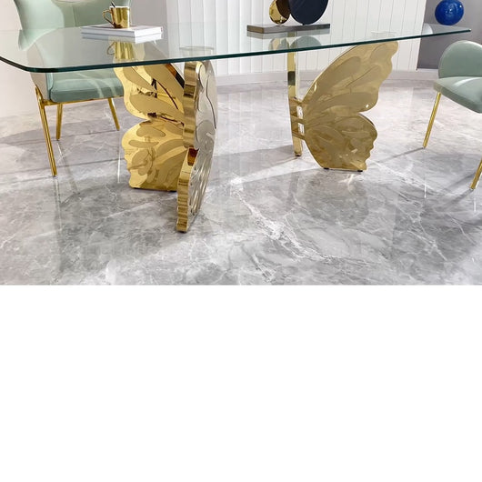 Estructura central sustentante de dos mariposas, que sujetan la mesa con sus alas.